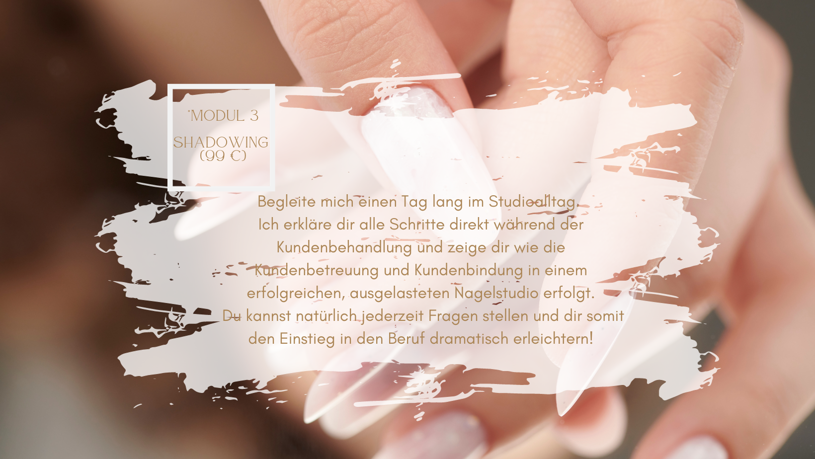 Hauptmodul 2 Tage Grundausbilung im Nageldesign + optionale Module nach Wahl der Kursteilnehmerin.