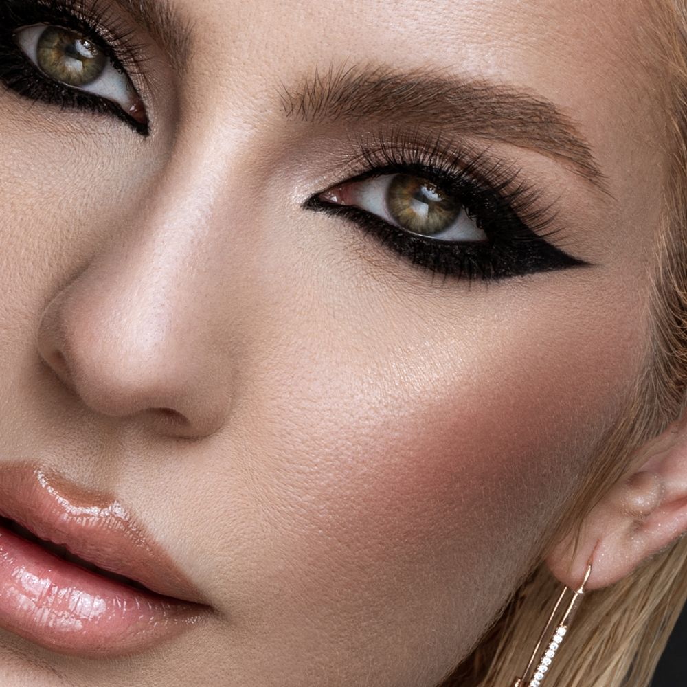 Beginne im äußeren Augenwinkel im gewünschten Winkel und verbinde die Linie mit dem Wimpernansatz. Wir empfehlen einen Pinsel mit Winkelfläche.