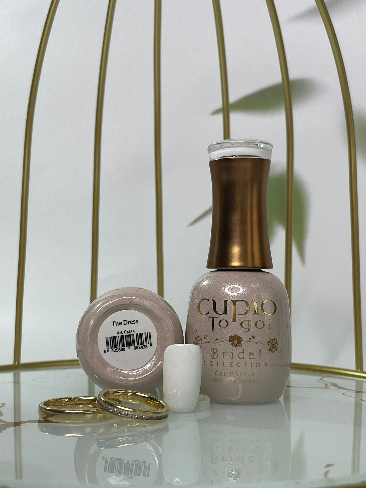 Die Bridal-Kollektion rückt Gellacke mit zarten Nude-Tönen und glänzenden Glitzerpartikeln in den Mittelpunkt. Die Bridal Collection soll jedem Outfit einen Hauch von Eleganz und Raffinesse verleihen. Die Nude-Töne sorgen für einen natürlichen und raffinierten Look, während die Glitzerpartikel für einen Hauch von Glanz sorgen, perfekt, um jede einfache Maniküre in eine ganz besondere zu verwandeln. Ihre Verwendung verleiht der Maniküre ein professionelles Aussehen und sorgt gleichzeitig für eine bemerkenswerte Haltbarkeit. Die Bridal-Kollektion ist ideal für Bräute, aber auch für jede Frau, die einen raffinierten und eleganten Look bevorzugt! Das sind die Vorteile von Cupio To Go!: ✅ Cupio Gellack To Go! vereint die Leichtigkeit des Auftragens eines Nagellacks mit der Beständigkeit eines UV-Gels. Es sorgt für eine Haltbarkeit der Nägel von bis zu 4-6 Wochen. ✅ Je nach Bedarf können die Farben ein- oder zweischichtig aufgetragen werden. Alle Farben können sowohl für den klassischen Auftrag von Gellack als auch für den Apex-Auftrag verwendet werden. ✅ Alle Farben der Cupio To go-Reihe! sie sind auch in den kombinierten Arbeitsformeln kompatibel; Sie können auch erfolgreich auf Acryl- oder Gel-Maniküren aufgetragen werden, sofern der verwendete Top Coat flexibel ist. ✅ Sie eignen sich sowohl für die professionelle Anwendung im Salon als auch für Frauen, die ihre Maniküre lieber zu Hause selbst durchführen möchten. Gewicht: 15 ml Anwendungsmethode: 1. Bereiten Sie den Naturnagel gemäß der Standardmethode vor (Formen Sie die Nägel, drücken und entfernen Sie die Nagelhaut und entfernen Sie dann den Glanz des Naturnagels mit einer Bufferfeile). 2. Tragen Sie eine Schicht Base Lac Cupio To Go auf -  diese trocknet in 30 Sekunden in der LED-Lampe oder in 120 Sekunden in der UV-Lampe. 3. Abwechselnd 2 Farbschichten auftragen (die zweite Schicht kann aufgetragen werden, nachdem die erste mindestens 30 Sekunden lang getrocknet ist), dann den Nagel 60 Sekunden lang unter die LED-Lampe oder 120-180 Sekunden unter die UV-Lampe halten. 4. Mit Top Coat Gel versiegeln und 60–90 Sekunden in der LED-Lampe oder 3–4 Minuten in der UV-Lampe trocknen; 5. Wischen Sie die klebrige Schicht mit Cleaner ab.