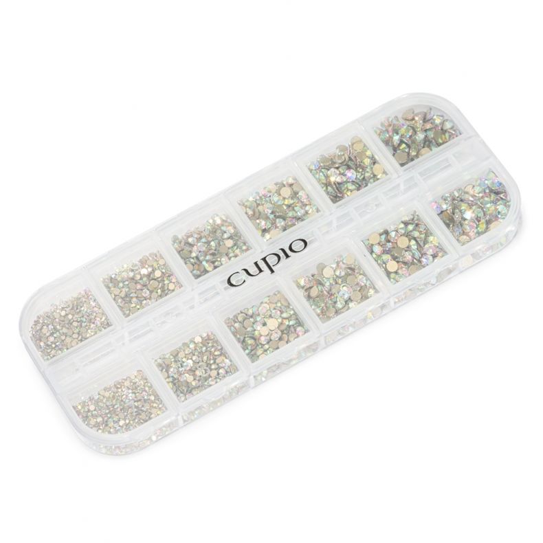 Spezielle Deko-Kristalle für die Nageldekoration. Das Karussell hat 12 Fächer mit Kieselsteinen in verschiedenen Formen und Größen.
