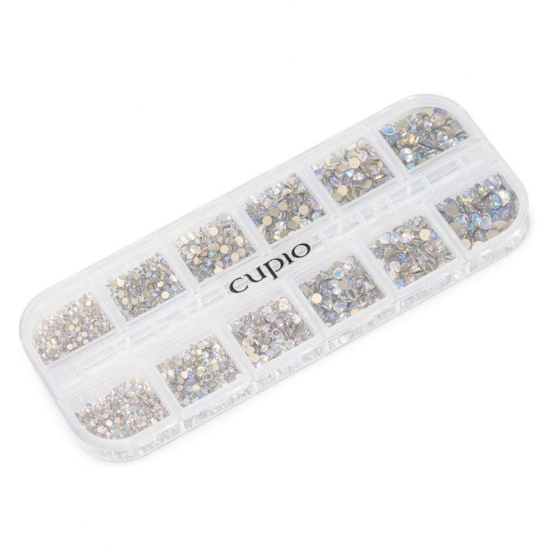 Spezielle Deko-Kristalle für die Nageldekoration. Das Karussell hat 12 Fächer mit Kieselsteinen in verschiedenen Formen und Größen.