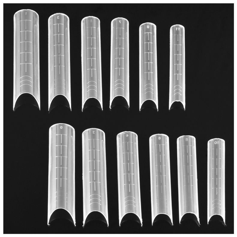 erhältlich in 12 Größen (so dass die Größe des Tips genauer an die des natürlichen Nagels angepasst werden können) Achtung! Es ist nicht ratsam, einen Tip zu wählen, der kleiner als die Breite des Nagelbettes ist.