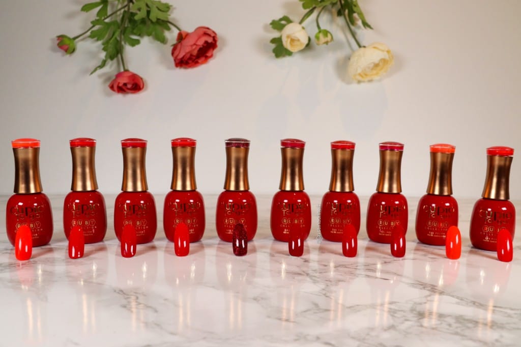 Mit sorgfältig ausgewählten und pigmentierten Farbtönen bietet Ihnen Ruby verschiedene Rottöne, passend für jeden Anlass.