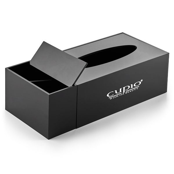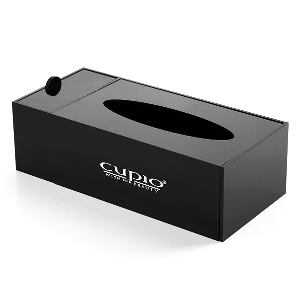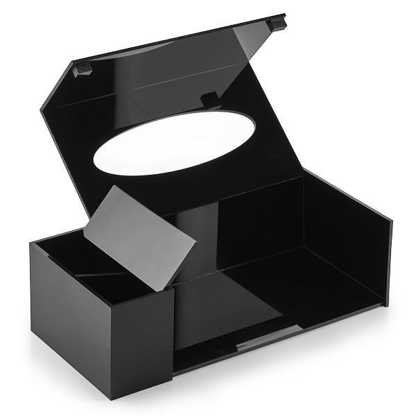 Ultra eleganter Plexiglasständer für Frontserviettenschachteln. Die Halterung hat einen speziellen Platz zum Aufbewahren von Ohrstöpseln und Reinigungsdisketten.