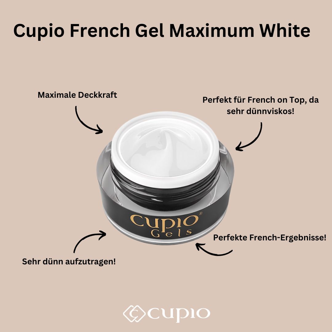 Maximum White UV-Gel ist ein Gel mit niedriger Viskosität und maximaler Deckkraft (5 auf einer Skala von 1 bis 5). Die flüssige Konsistenz dieses Gels empfiehlt es sich für die Anfertigung von Oberflächen-French (lackiertes French). Aufgrund der hohen Pigmentierung reicht bereits das Auftragen einer einzigen Gelschicht aus.