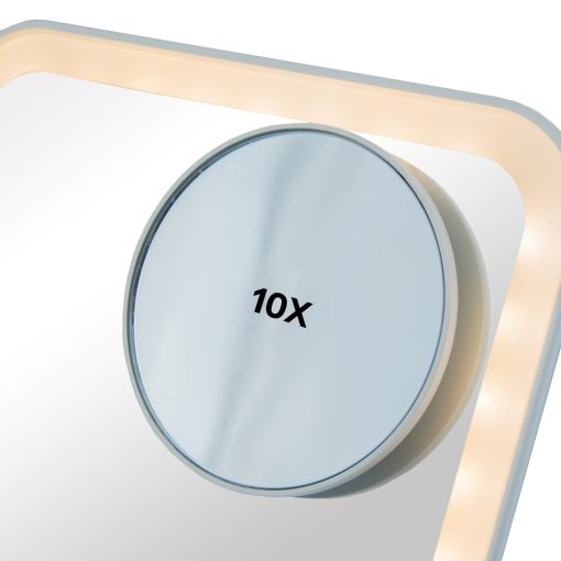 Diese Tasche zeichnet sich durch ihre innovativen Funktionalitäten aus. Ausgestattet mit einem großen, abnehmbaren Spiegel und einem 10-fach Vergrößerungsspiegel eignet es sich perfekt für das detaillierte Auftragen von Make-up. Der Hauptspiegel verfügt über drei Arten einstellbarer Lichter (warm, kalt und neutral), die eine Steuerung der Intensität ermöglichen und ihn ideal für unterschiedliche Lichtverhältnisse machen. Darüber hinaus kann der Spiegel über USB aufgeladen werden, was eine kontinuierliche und effiziente Nutzung gewährleistet.