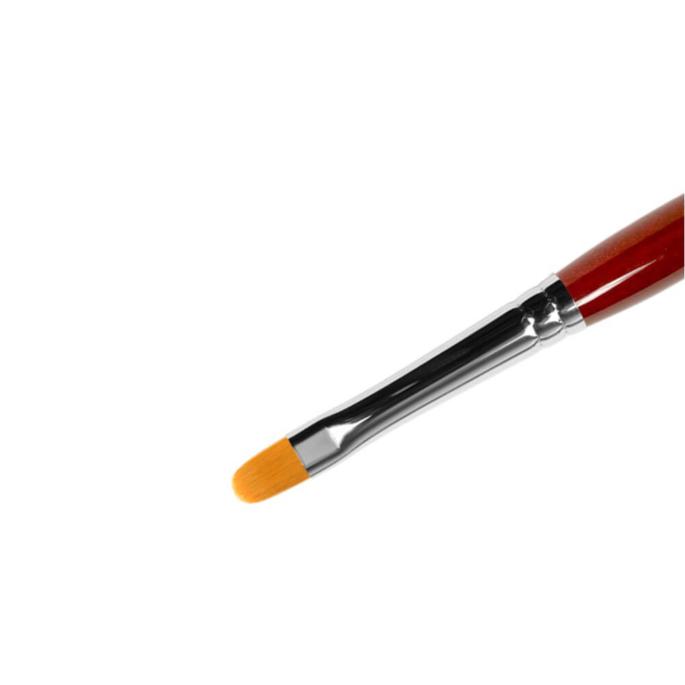 Professioneller Pinsel mit synthetischen Haaren für die Modellierung von Gelnägeln. Der Pinsel ist bis zur Spitze geschärft, sodass die Nagelhautlinie genauer herausarbeitet werden kann.
