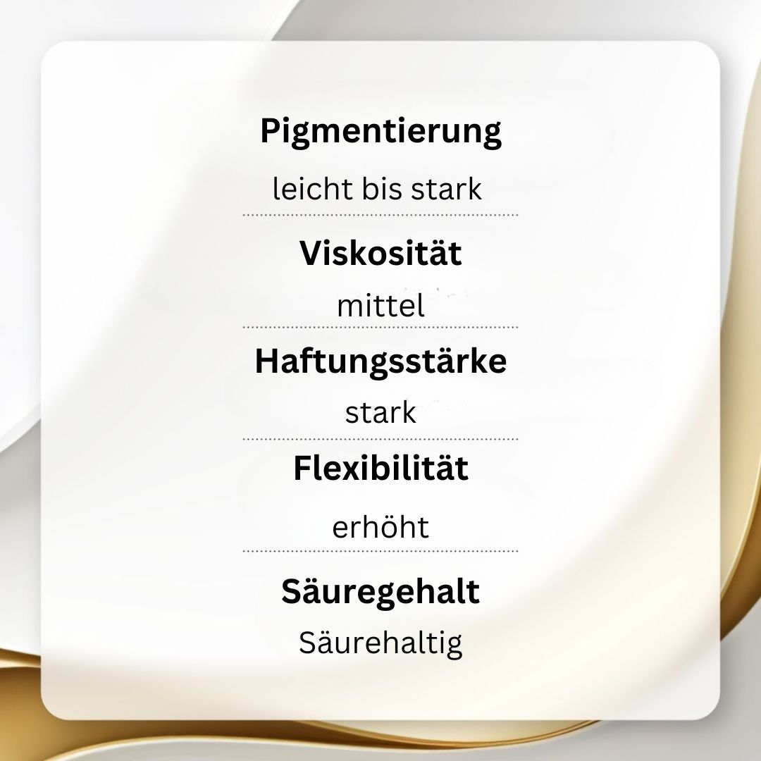 Achtung! Das Produkt muss bei einer Umgebungstemperatur zwischen 15 und 25 °C gelagert werden. Niedrige oder sehr hohe Temperaturen können zur Sedimentation des Farbpigments führen.