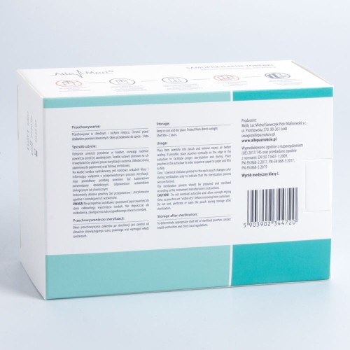 Die Beutel wurden aus medizinischem Papier mit einem Gewicht von 60g/m2 und mehrlagiger PET/CPP-Folie hergestellt. Sie sind sicher, garantieren ein staubfreies Öffnen nach Abschluss des Sterilisationsprozesses und sollten zum Einmalgebrauch verwendet werden.